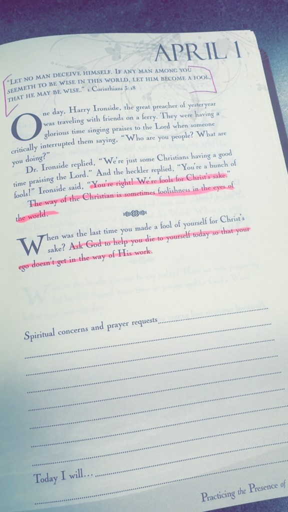 Today is April 1st, and regarded as a day of pranks and Tom foolery, known as April Fools day. Can’t say I didn’t play a prank myself today that caused some to foolishly fall for it, was it right….maybe not…but it was all in fun and we all laughed. But my devotion today was all about actually being a fool.