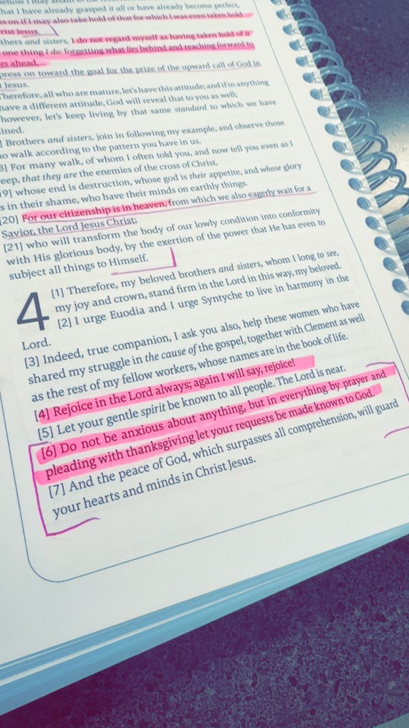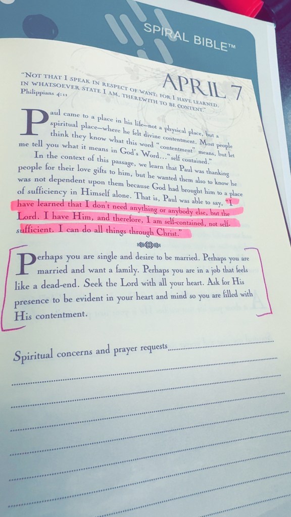But before I leave off, I wanna back track a little………..Philippians 4:6-7 “Do not be anxious about anything, but in everything by prayer and pleading with thanksgiving let your requests be made known to God. And the peace of God, which surpasses all comprehension, will guard your hearts and minds in Christ Jesus.” WOW. Something I struggle with is anxiousness and anxiety. I do not like being in crowds, or around people in general. Yes yes I know…….i work with the public and I want to open a restaurant. But right here I am told not to be anxious, God has got me. He grants me the peace that surpasses everything……..including my overactive and anxious mind and heart. When feelings of anxiety begin to take hold……stop……breath………..and go to Him in prayer. When His peace falls on you, its like I can breath again. So in all this, be content. Be content in the season you are in because God is taking care of it all. He is supplying our needs and granting us the peace we need if we just turn to Him and find contentment.
